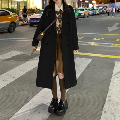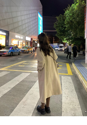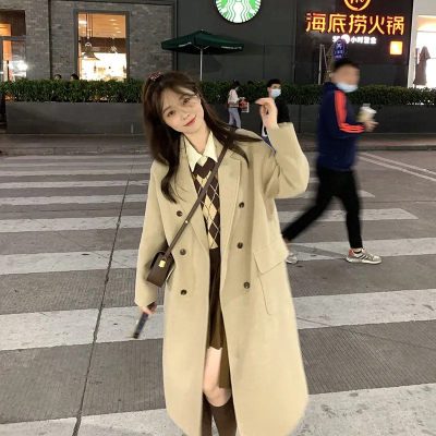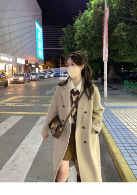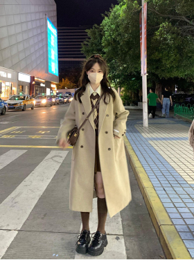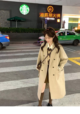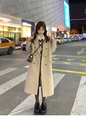Woolen coat women's 2023 winter Hepburn style straight thickened cotton small over the knee mid-length oatmeal coat