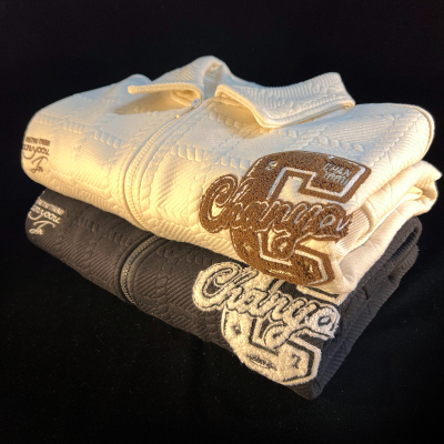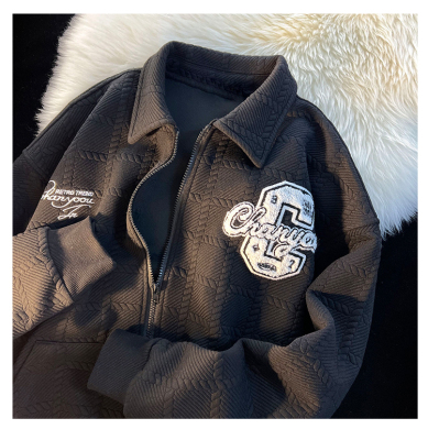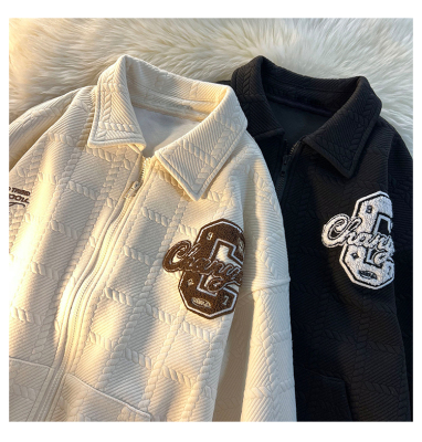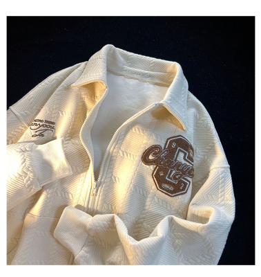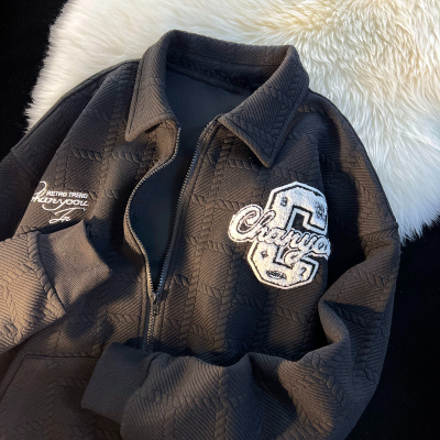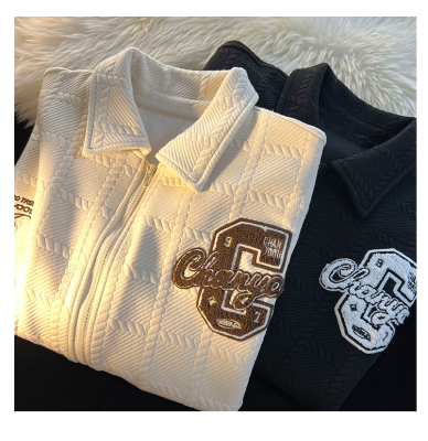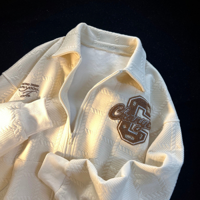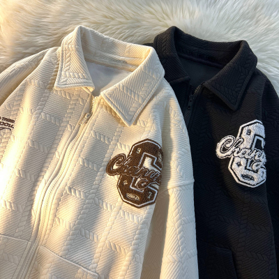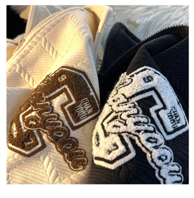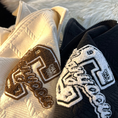 Chic Brand Towel Embroidery Flocked Letter Loose Stand Collar Apricot Color Coat Versatile Long Sleeve Men Women Autumn Winter Thick Couple