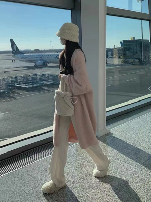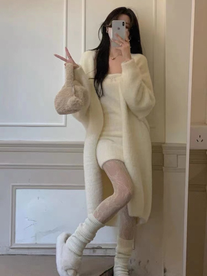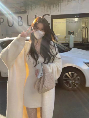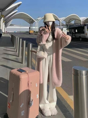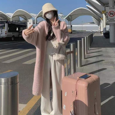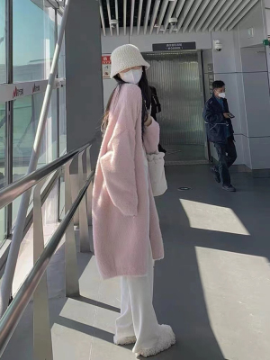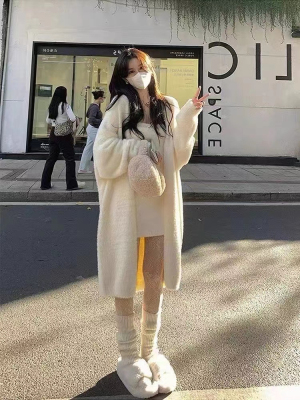 2023 Spring and Autumn Lazy Loose Knee-Length Long-Sleeve Thick Pure Desire Faux Mink Wool Knit Cardigan Women's Outerwear
