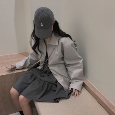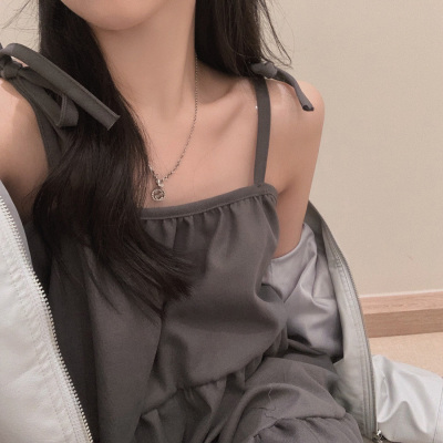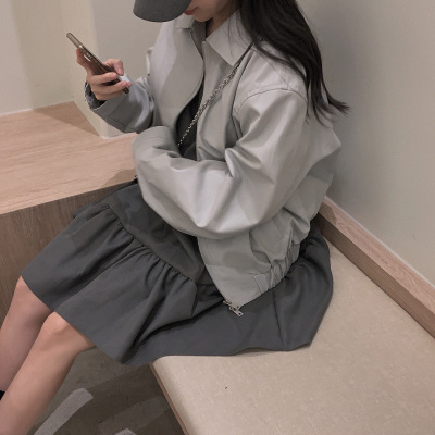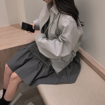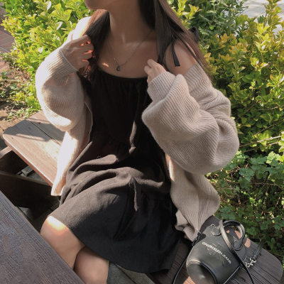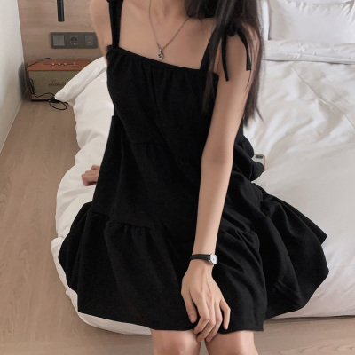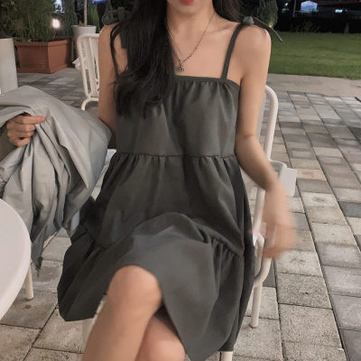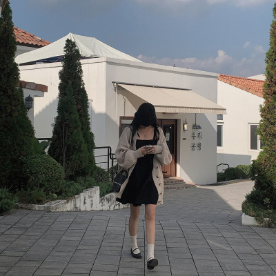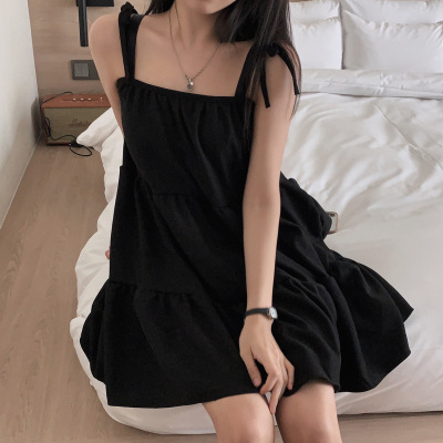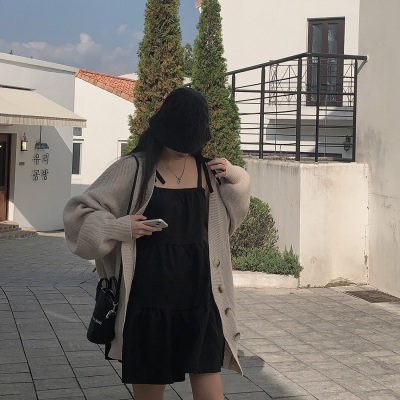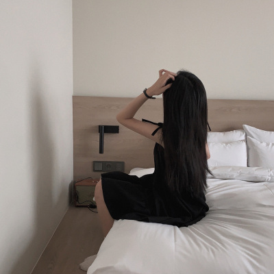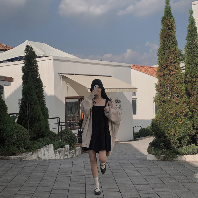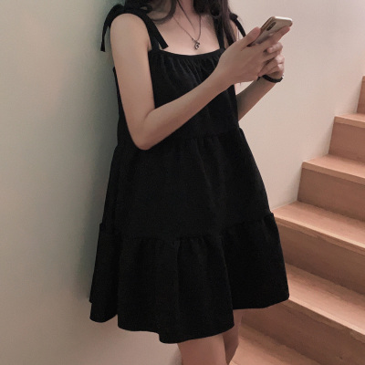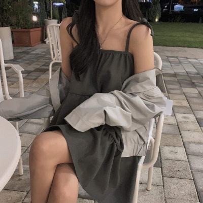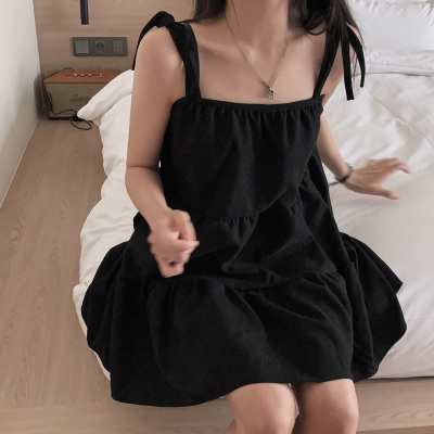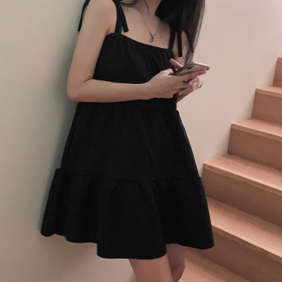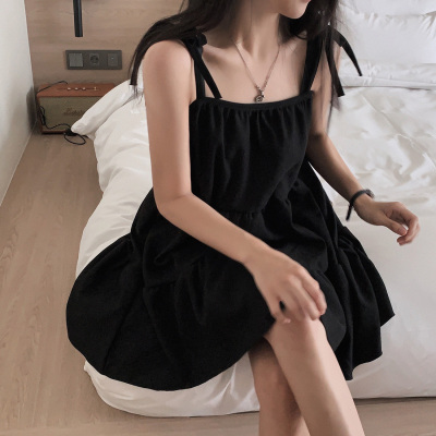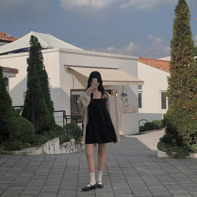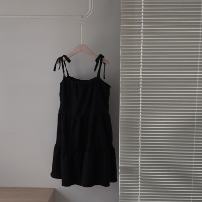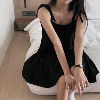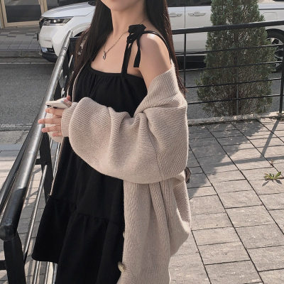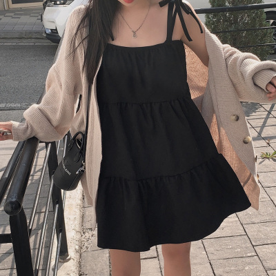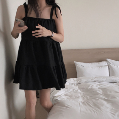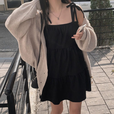 Korean Chic Autumn French Style Elegance Simple Underwear Bow Strap Loose Dress Short Skirt for Small People