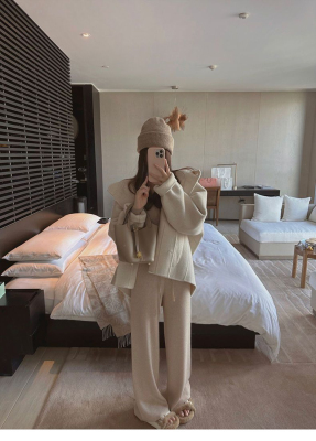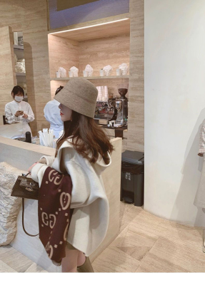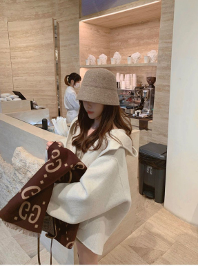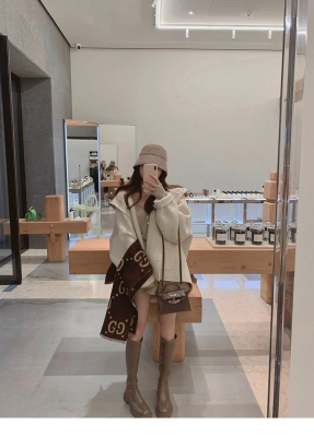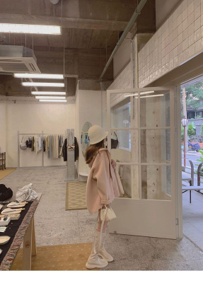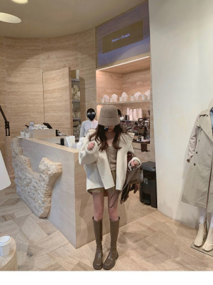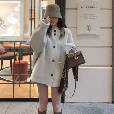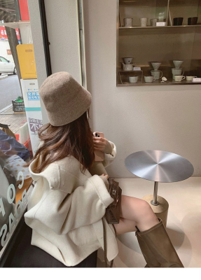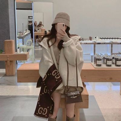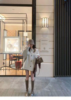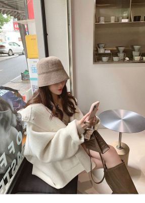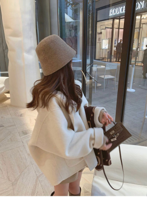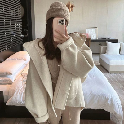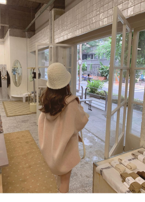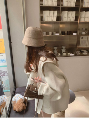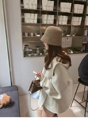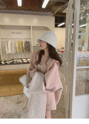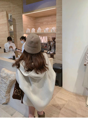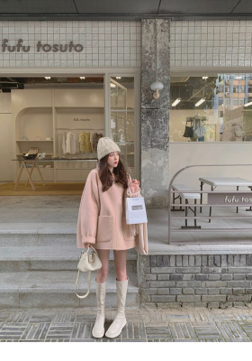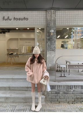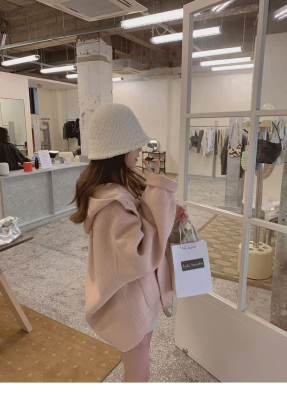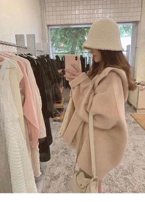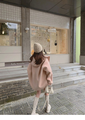 Herben-style fur-lined coat women's winter new model hooded plain medium-length pink cute wool outerwear women