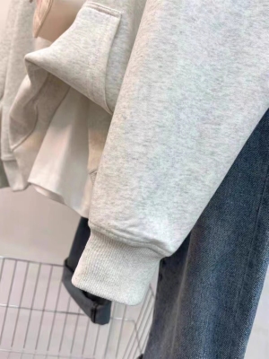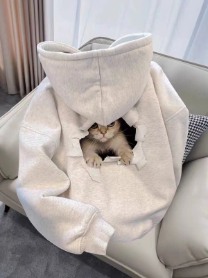 Thin-gauge cotton milk fabric lined, padded cotton silver fox fur printed women's hooded sweatshirt with a simple and sophisticated upper body design