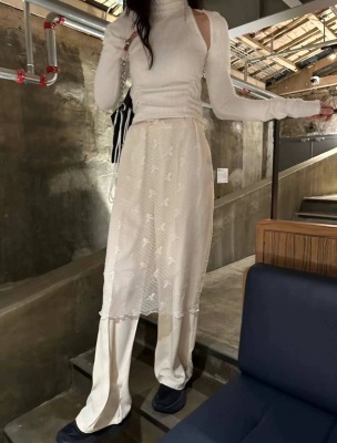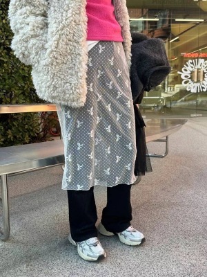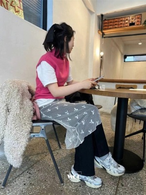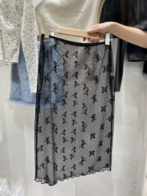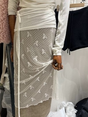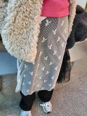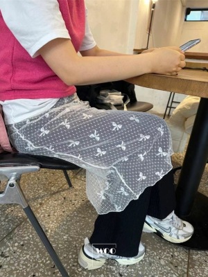 ~Korean Personal Style Layered Outfit Lace Butterfly Bow Waistline Semi-Body Skirt Versatile Ins Design