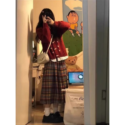 Vintage-style colorful A-line grid half skirt for women, autumn and winter high-waisted mini JK plaid umbrella skirt long dress