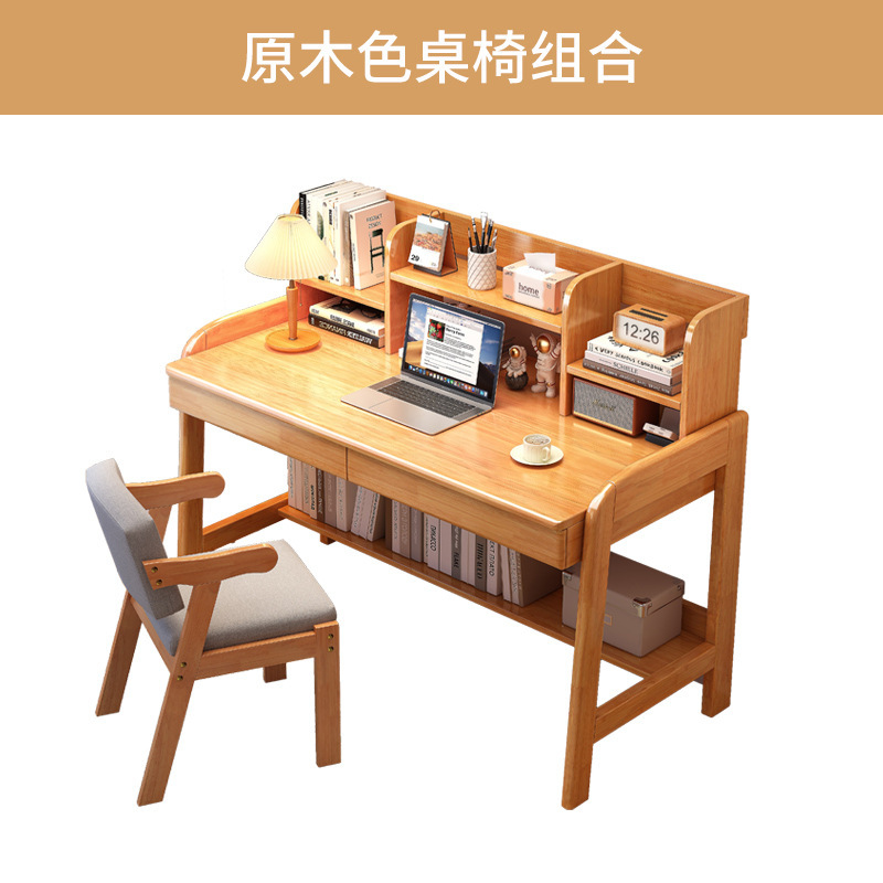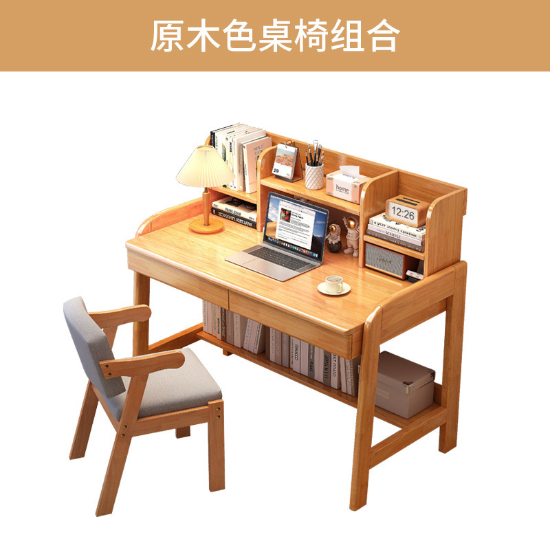 Small apartment desk bookshelf integrated bedroom bedside writing table simple home office desk solid wood children's study table