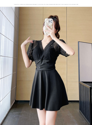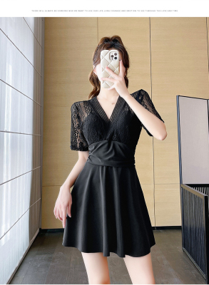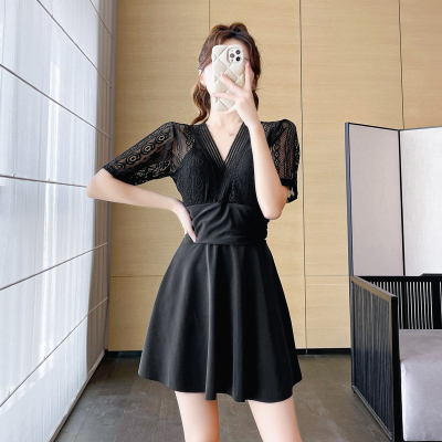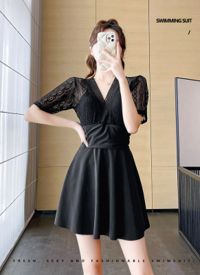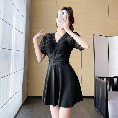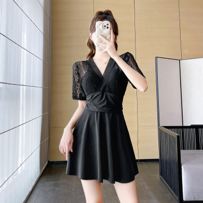 Women's summer swimsuit conservative push-up one-piece large size belly covering and slimming 2024 new hot spring swimsuit sexy lace