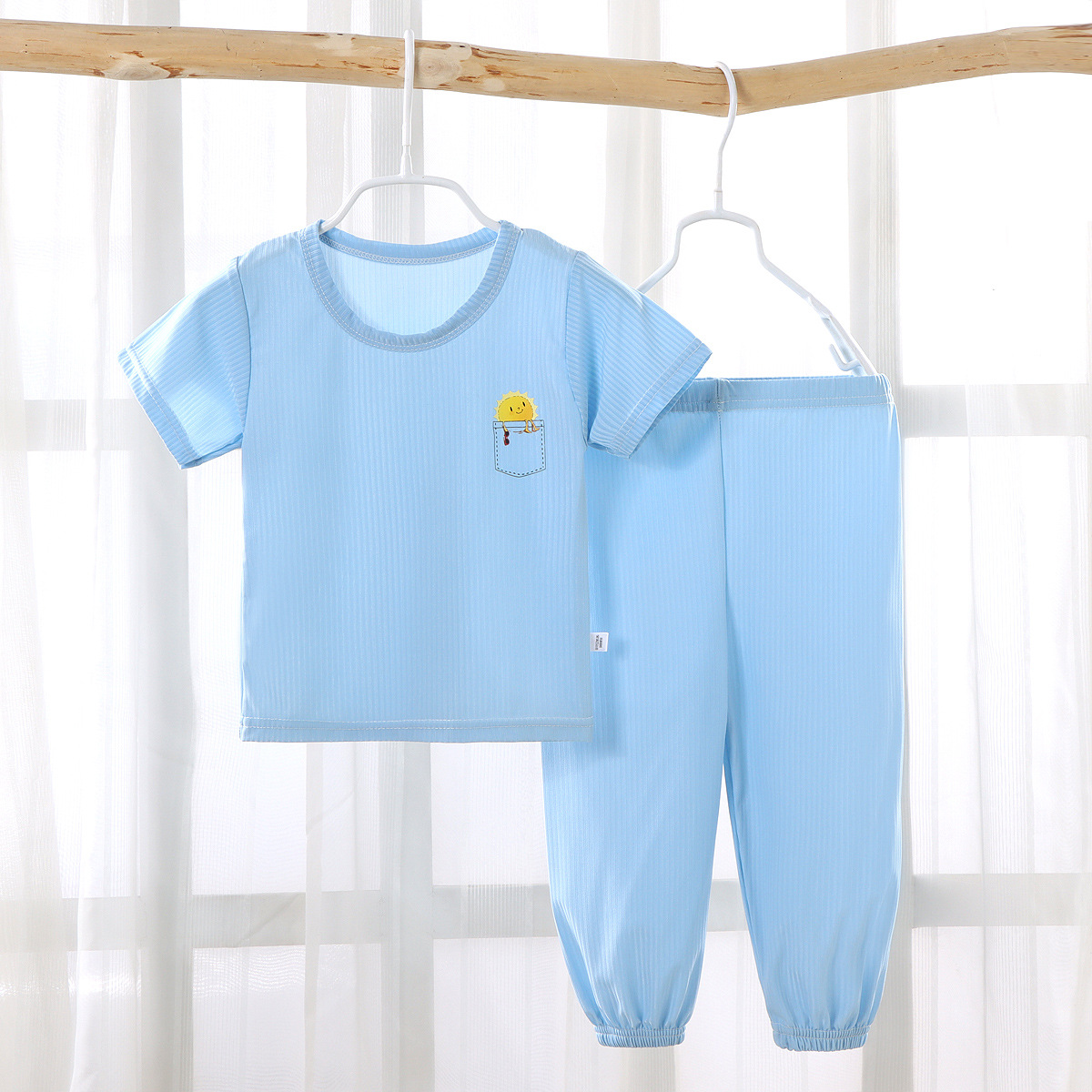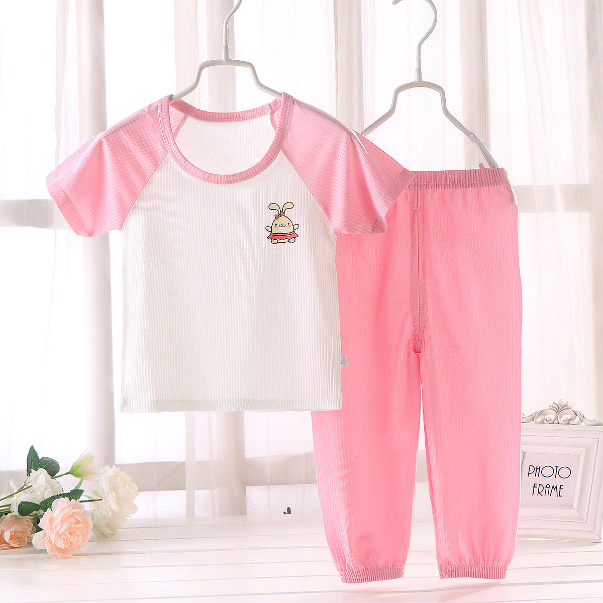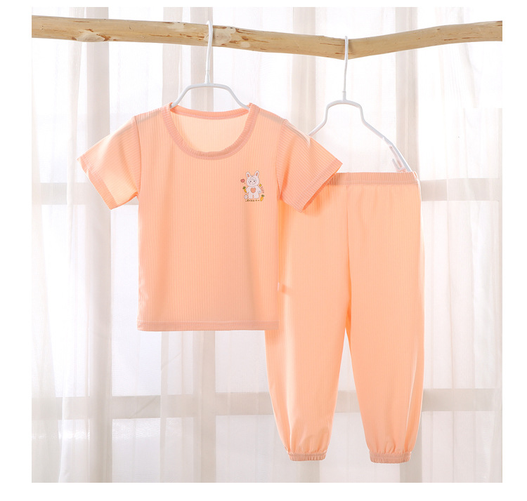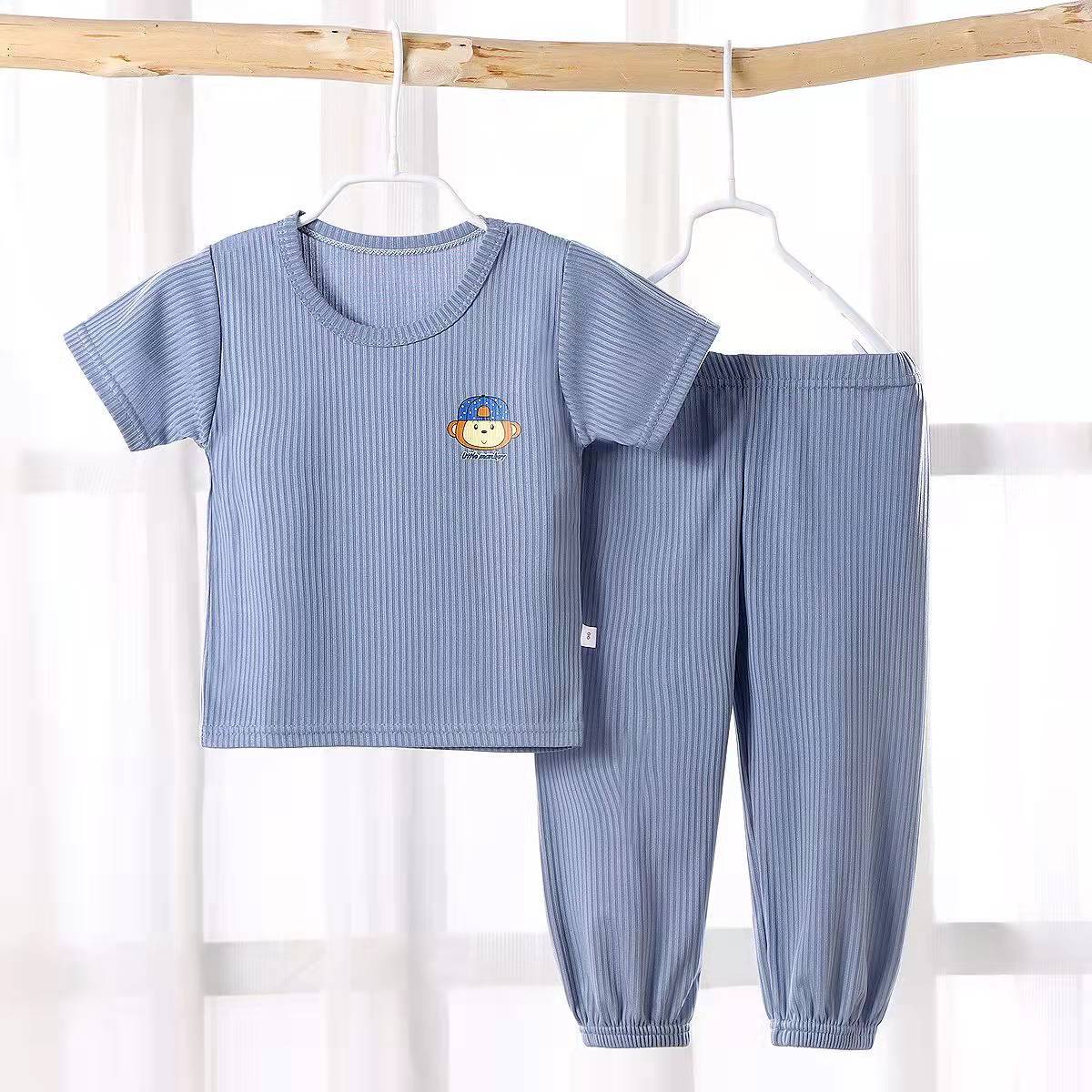 Children's short-sleeved baby boy suit summer anti-mosquito pants boys and girls summer clothes baby ice silk short-sleeved pajamas home clothes