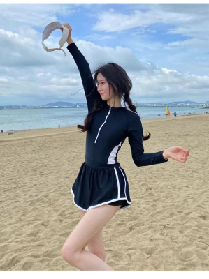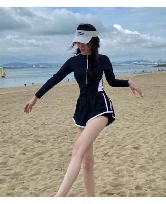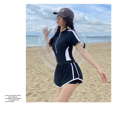 Women's summer one-piece swimsuit slimming belly-covering new conservative sun protection boxer swimming pool special swimsuit
