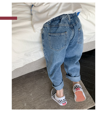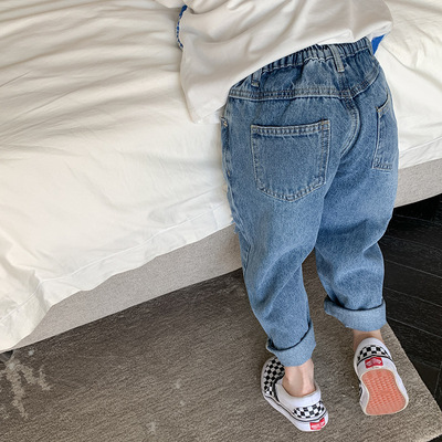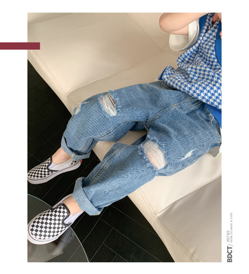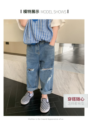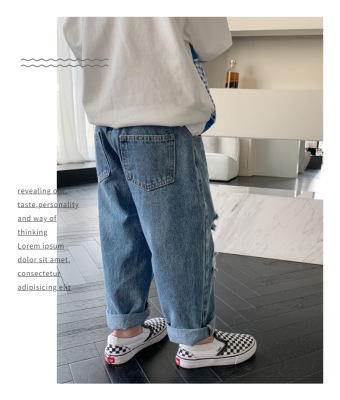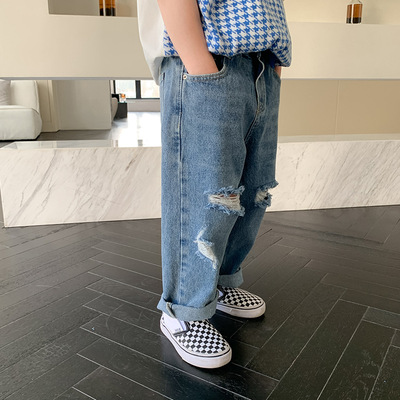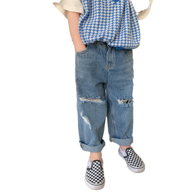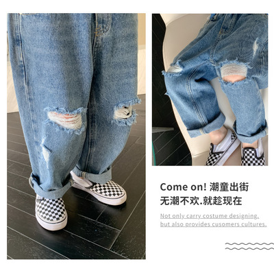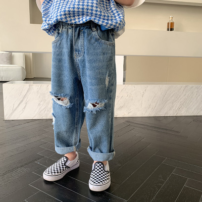 Boys' washed jeans, spring and autumn 2024 new children's clothing, handsome ripped trousers, baby style casual pants