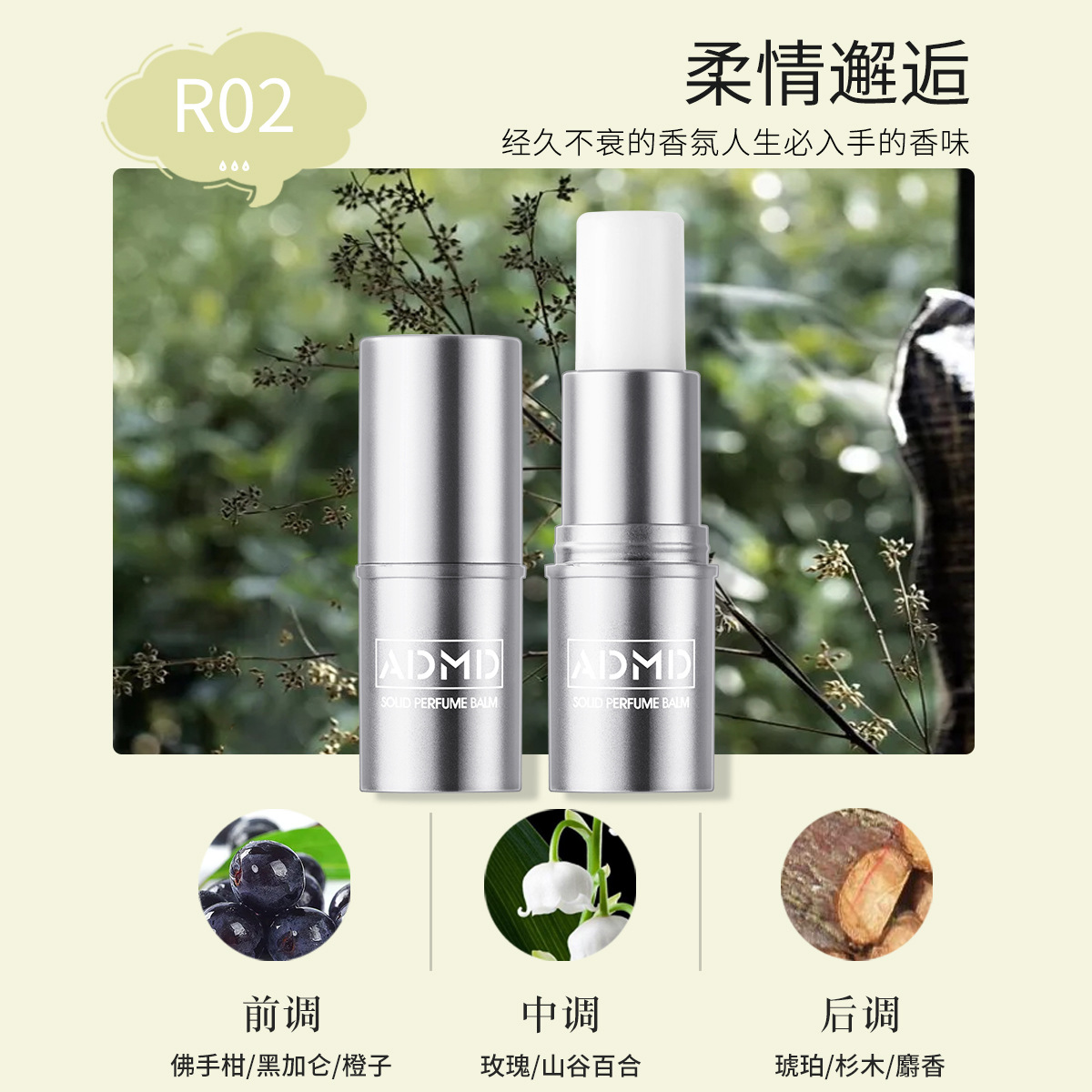 ADMD solid balm stick deodorant portable portable men and women long-lasting fragrance light fragrance solid perfume