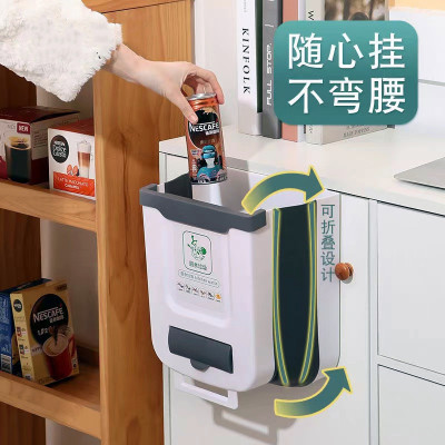 Kitchen folding trash can household multi-functional cabinet door wall-mounted trash can thickened hanging car trash can