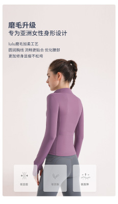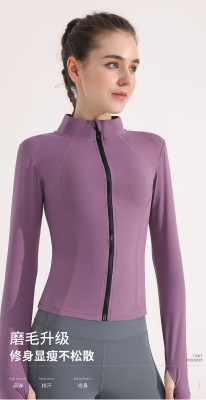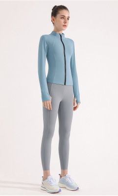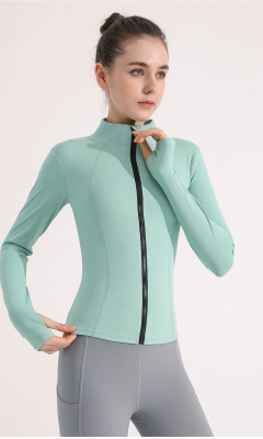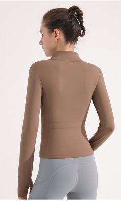 Autumn and winter sports yoga jacket women's elastic zipper outdoor running fitness sweatshirt stand-up collar long-sleeved top