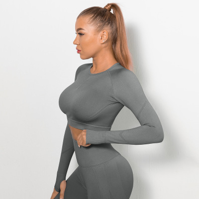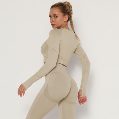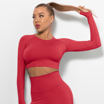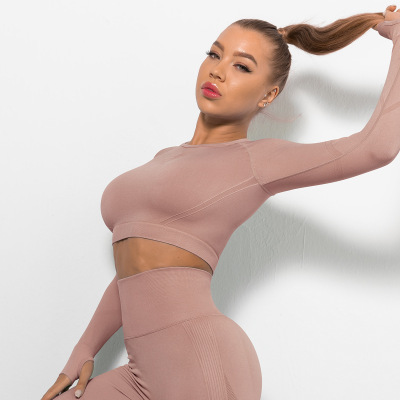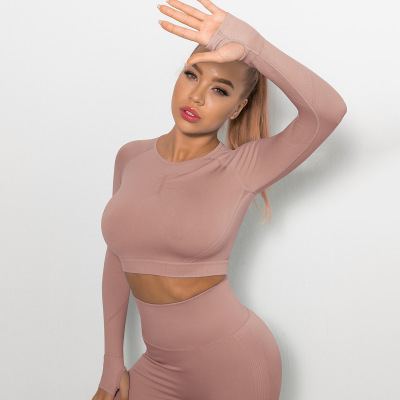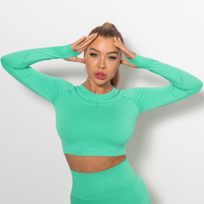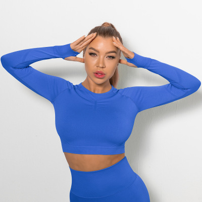 Cross-border Euro-American Style Sexy Seamless Yoga Wear: High-Elasticity Pleated Quick-Dry Long-Sleeve Top for Fitness and Yoga