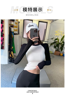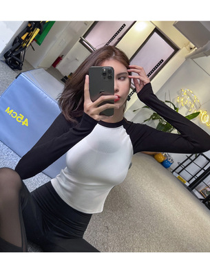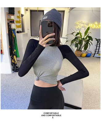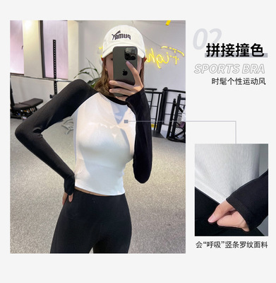 Cross-border fitness contrasting color tight-fitting sports long-sleeved running slim top comfortable and breathable spring and autumn yoga clothes with high elasticity