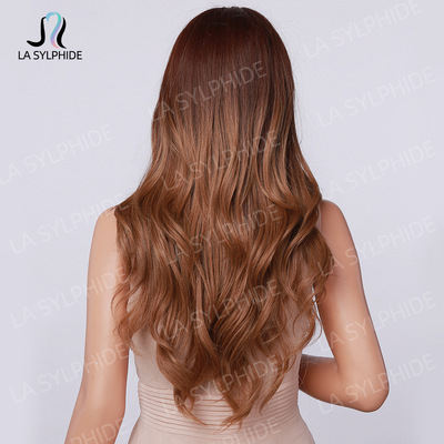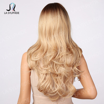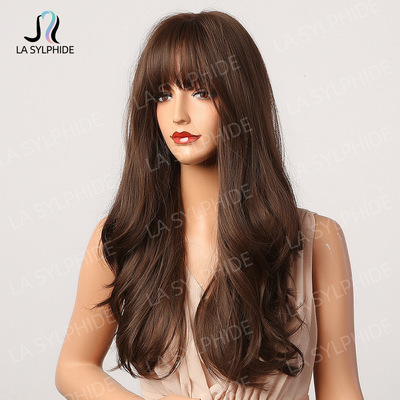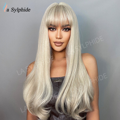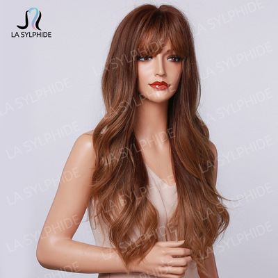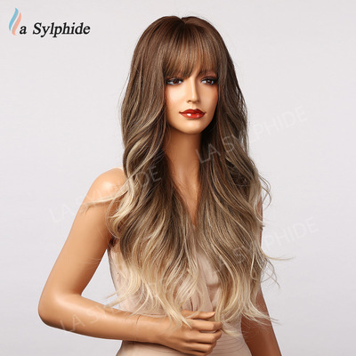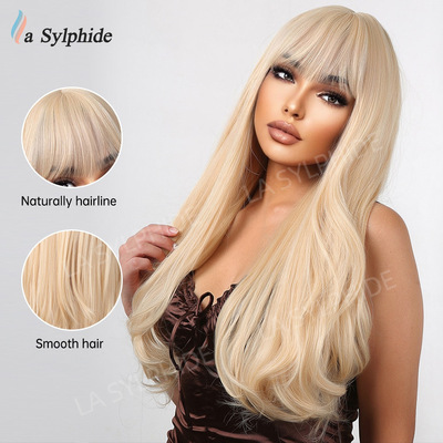 Amazon Best Selling Women's Foreign Bangs Wig Full Head Cover Mechanical Synthetic Fiber Golden Hair Long Wavy Hairstyle