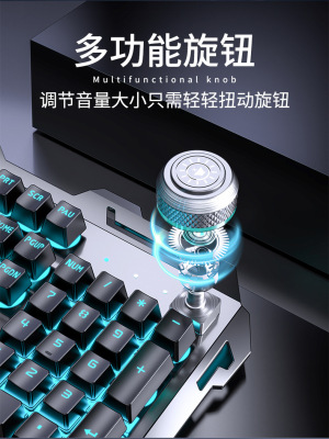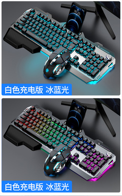 Silver black blue light [wireless rechargeable-knob version] + wireless mouse + Bluetooth headset