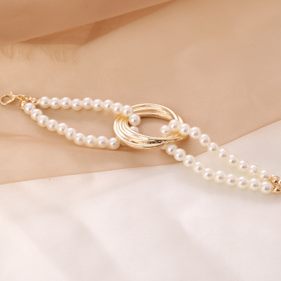 European and American cross-border jewelry retro pearl portrait disc geometric metal necklace bracelet set clavicle chain sweater chain