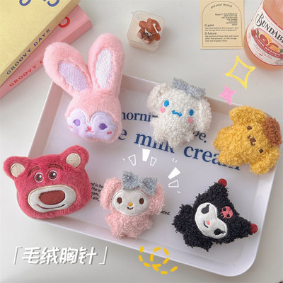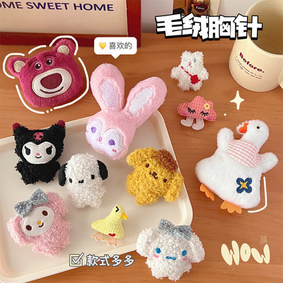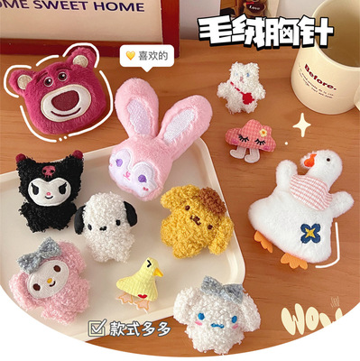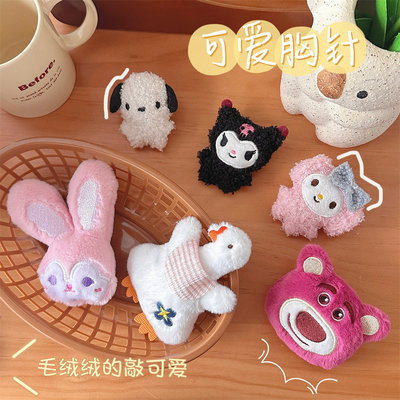 Cartoon plush bear brooch wholesale rabbit doll bag decoration strawberry bear cute scarf hat accessories