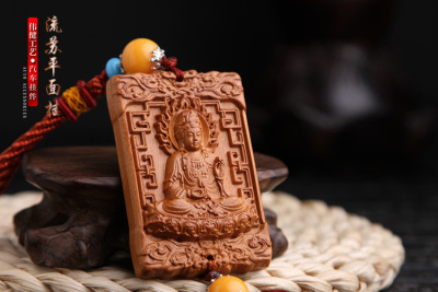 Car Accessories Car Hangings Seated Guanyin Plain Fringe Solid Wood Rearview Mirror Hangings Small Gift LPG04