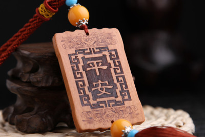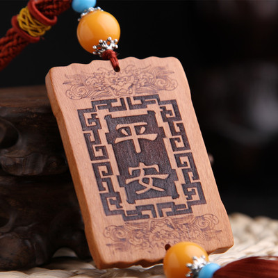 Car Accessories Car Hangings Flat Pom-pom Streamer Wood Insignia Rearview Mirror Ornament Small Gift LPG05