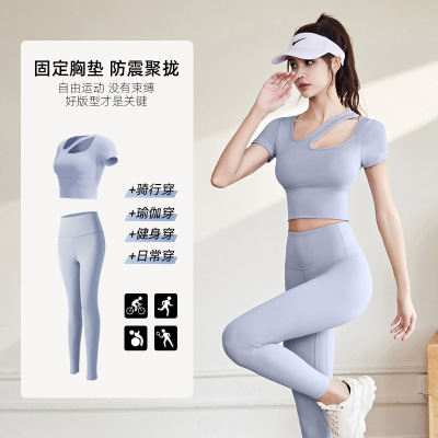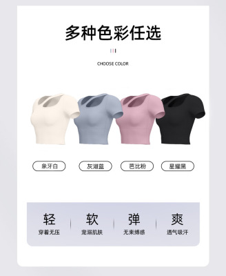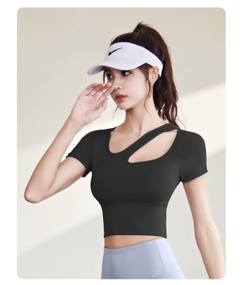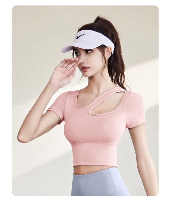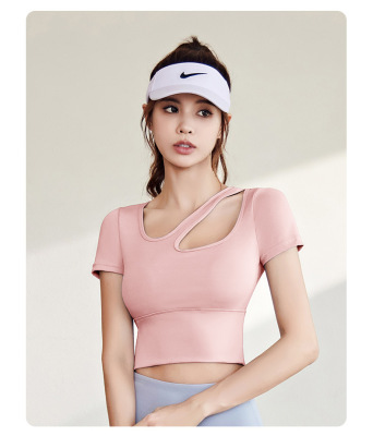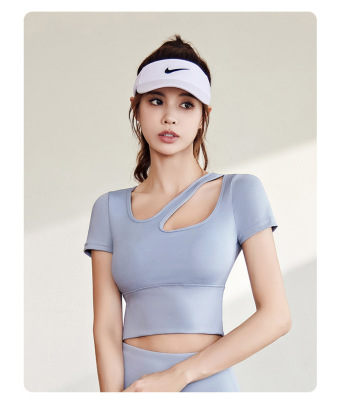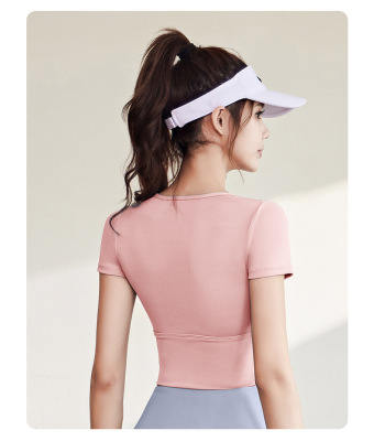 Women's Quick-Drying Sports Top with Lacing for a Slender Fit, Yoga Top for Women with Bra Pads, High-Intensity Shock-Proof Yoga Short Sleeve