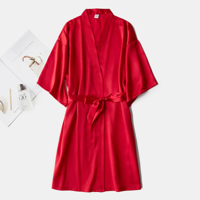 Women's Half Sleeve Silk Simulated Sleep Dress Wedding Makeup Dress Thin Cardigan Dress Bride Morning Dress BFF Dress Solid Color No Words