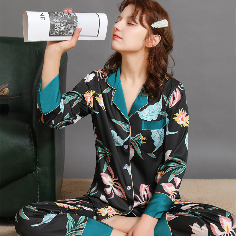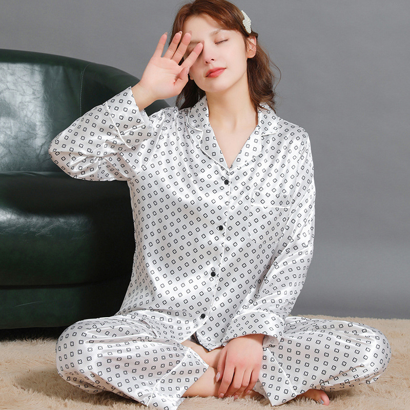 Ladies' silk spring and autumn new summer long-sleeved long pants thin version simple Korean-style home suit set wholesale