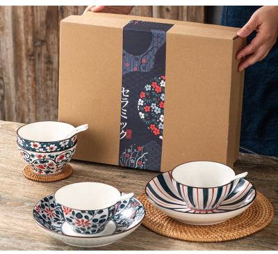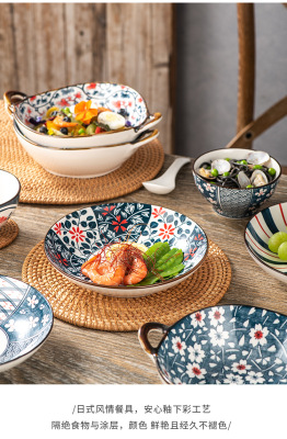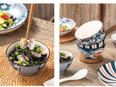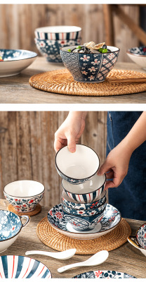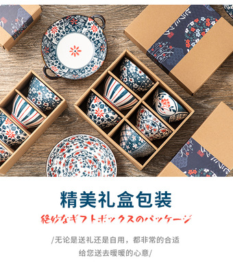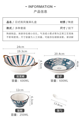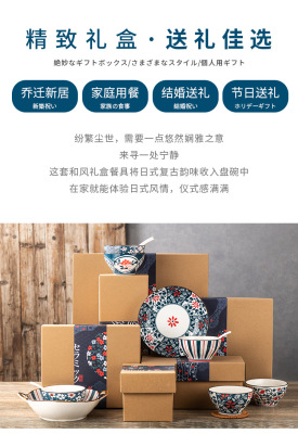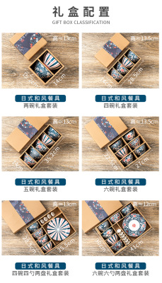 Japanese ceramic tableware gifts bowls and plates set blue and white porcelain bowls and chopsticks set ceramic bowl opening event gifts wholesale