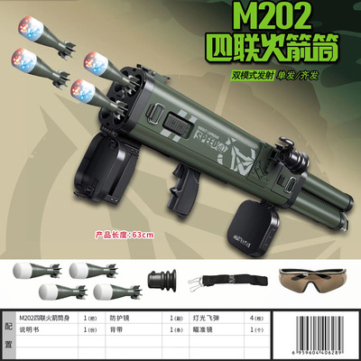 LeHui M202 Children's Rocket Propelled Grenade Soft Toy with Lights Four-Barrel Rocket Gun Soft Air Gun RPG Mortar