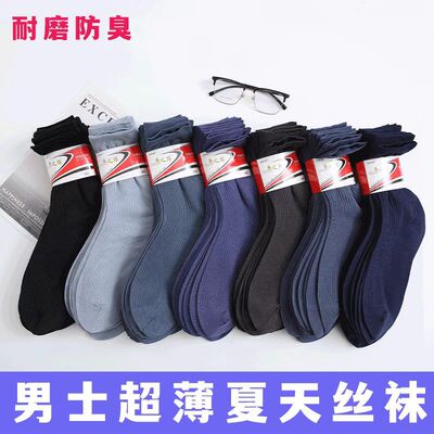 Spring and summer men's thin pearl velvet medium tube with heel short stockings bamboo charcoal fiber large business socks wholesale