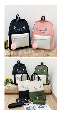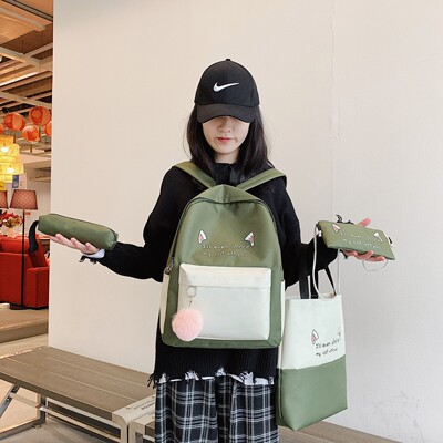 Internet celebrity bag female college style four-piece set contrasting color backpack fashion large capacity high school junior high school student bag backpack