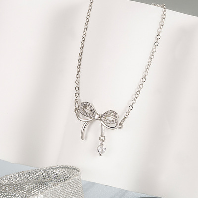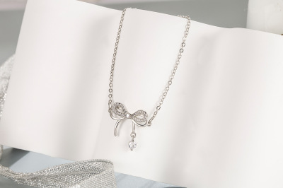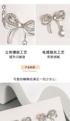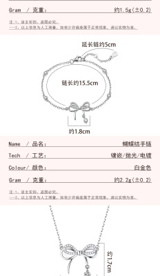 Butterfly Dream Smart Bow Pendant Necklace Women's Niche Light Zircon Earrings Bracelet Three-piece Set Decoration Women's Fashion