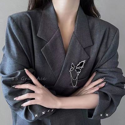 Black butterfly tassel metal brooch women's autumn and winter ins sweet and cool high-end suit corsage niche high-end jewelry