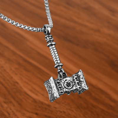 New European and American trendy accessories: Titanium steel punk men's necklace—Destruction Thor's Hammer pendant, factory direct sales