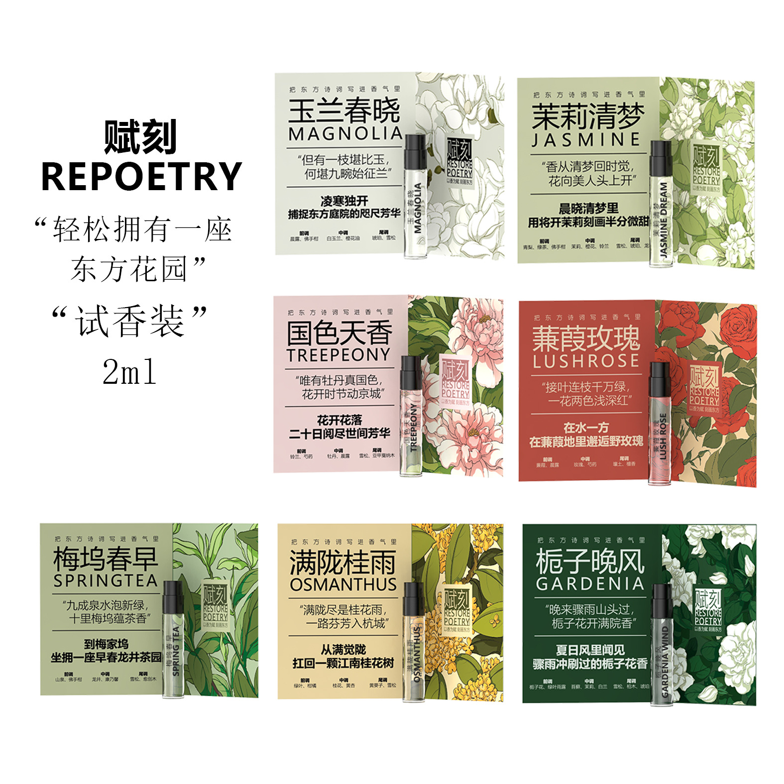 Trial fragrance pack-2ml*7 bottles, 1 of each of the 7 styles by default