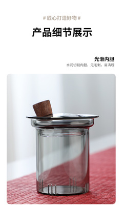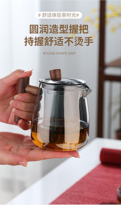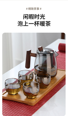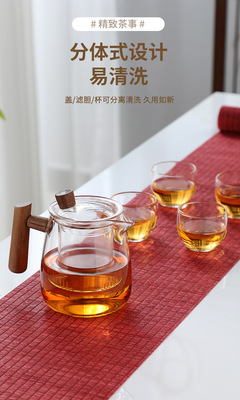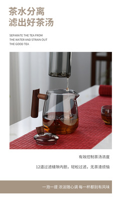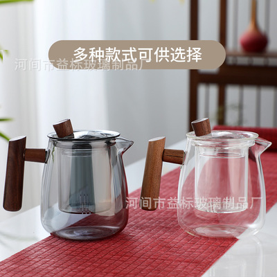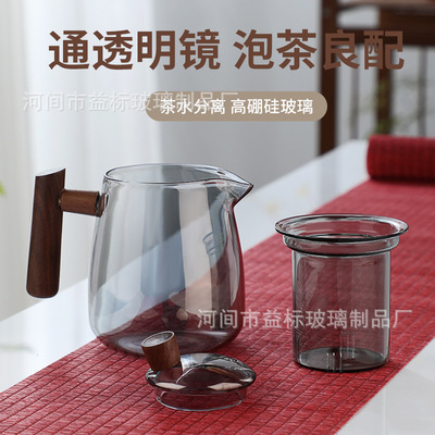 High borosilicate wood glass teapot high temperature resistant tea water separation teapot single pot tea set gift box set