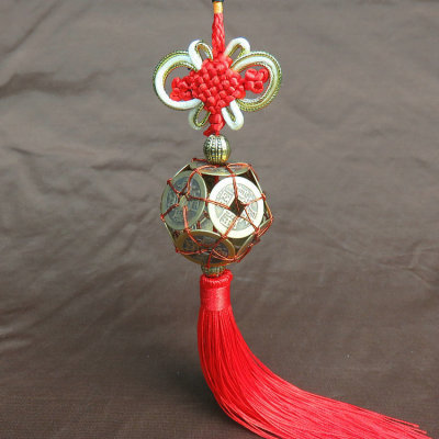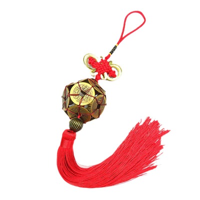【介紹】:本款掛件取材銅質,經過手工編織成路路通的球形,寓意好運相伴、路路暢通。