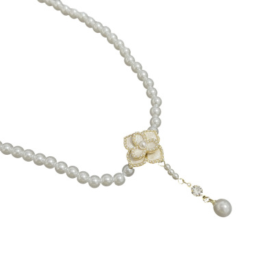 French-style Retro Micro-Inlaid Pearl Oil-Drop Camellia Necklace for Women – Delicate Clavicle Chain with a Fashionable, Elegant, and Luxuriously Light Appeal