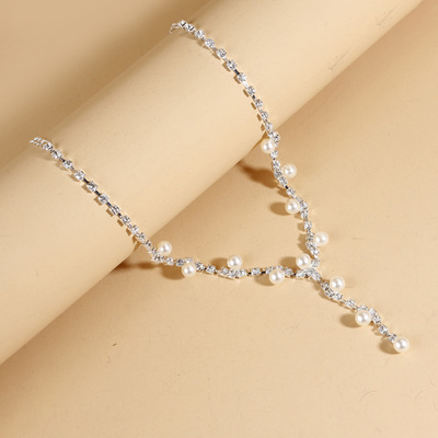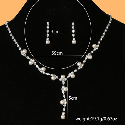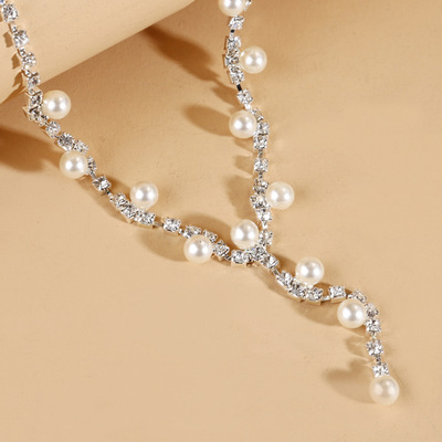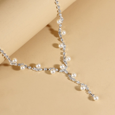 Eurasian Cross-Border Pearls Necklace Bridal Set, Fashion Classic Wave-Shaped Diamond Halo Earrings Necklace Set N6196
