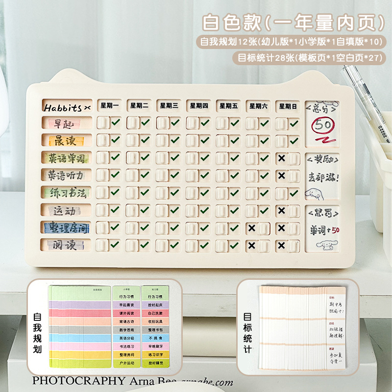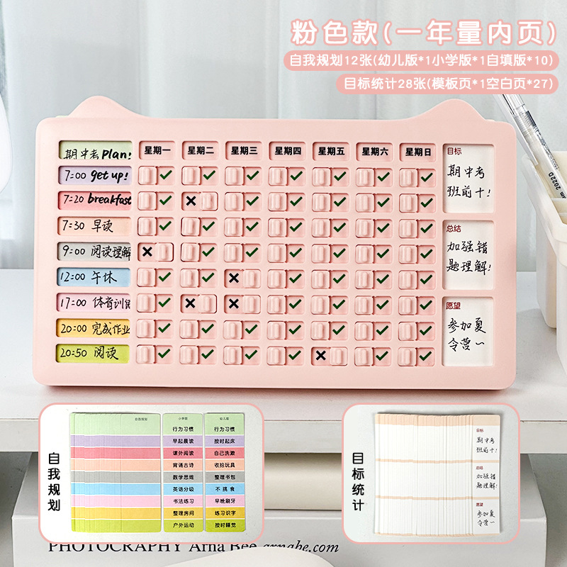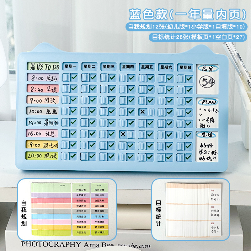 Children's Weekly Plan Self-Discipline Punch Card for Primary School Students Summer Daily Learning Schedule Schedule Planning Punch Card
