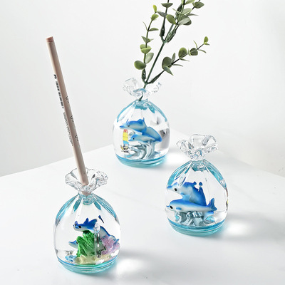 Oil Droplet Pen Holder, Acrylic Mediterranean Sea Student Desk Ocean Animal Pen Pot, Tourist Gift