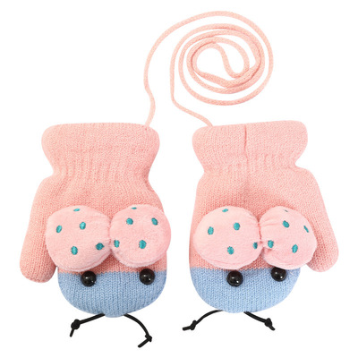 Children's cartoon warm gloves for kids aged 3-6, unisex, with extra lining and thickness, cold-resistant, cute, neck looped fingerless gloves