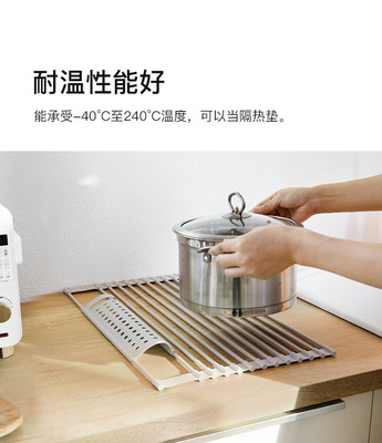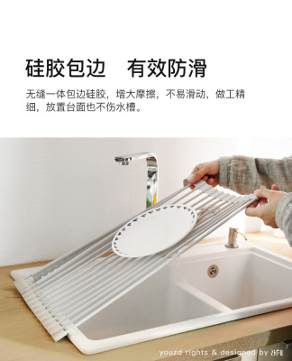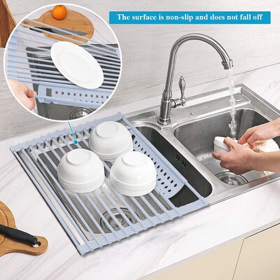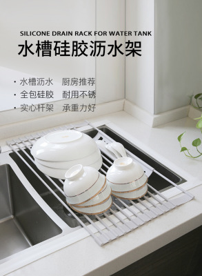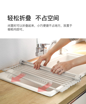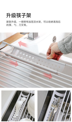 Kitchen drain rack dish rack with chopstick basket multi-functional storage rack roller shutter sink drain rack silicone drain rack
