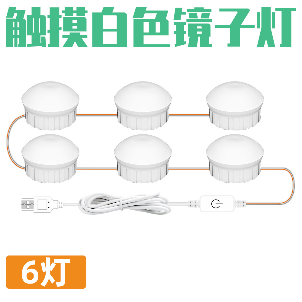 Humidified Lighting Makeup Mirror LED Front Lamp 5V Hollywood Mirror Lamp USB Touch Dimmable 6 String Bulbs Cross-border Amazon