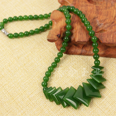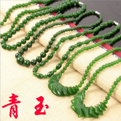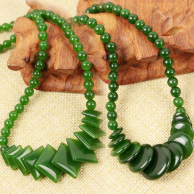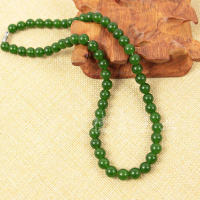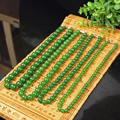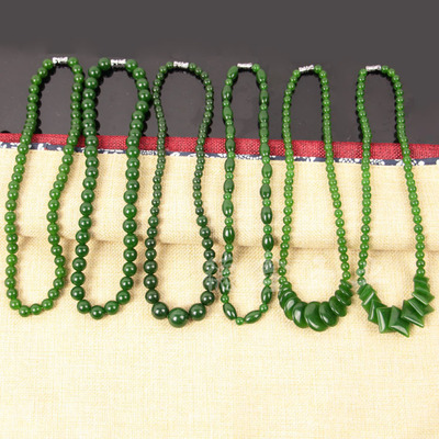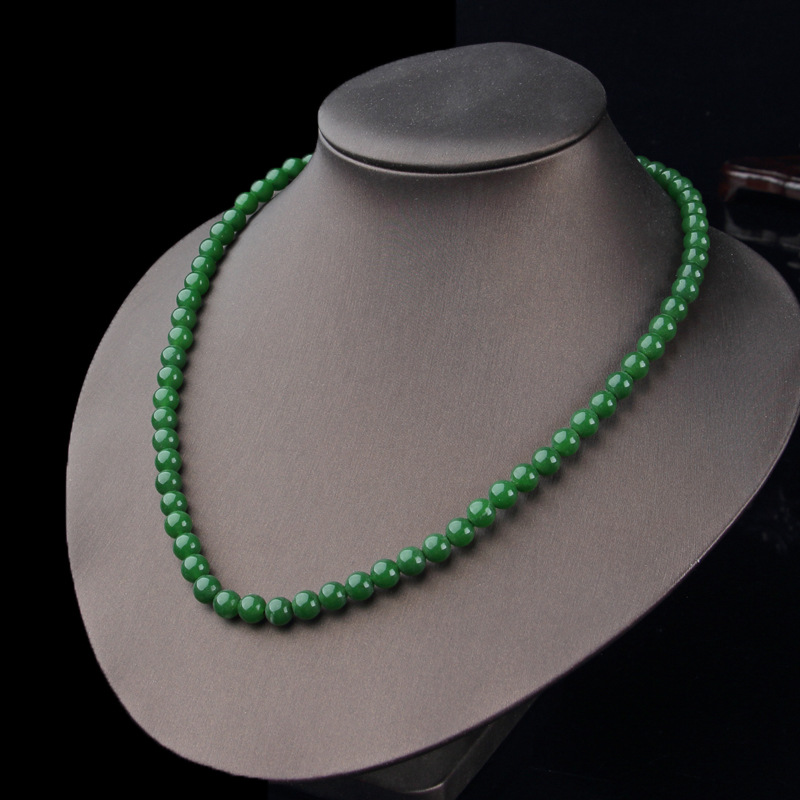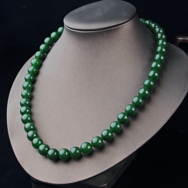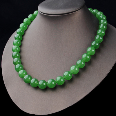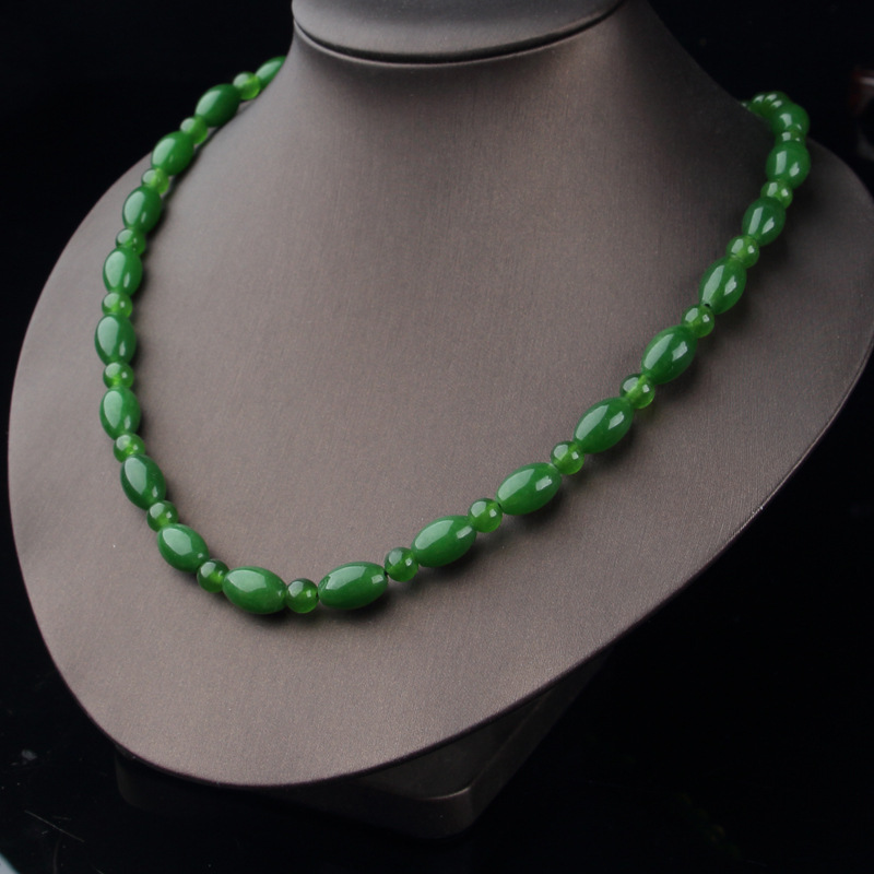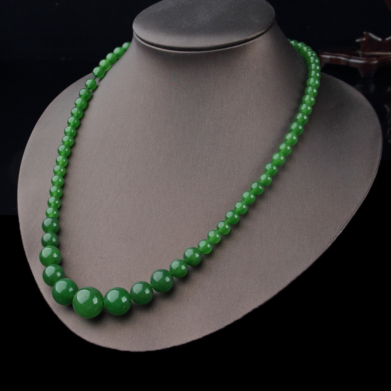 Taiwan sapphire necklace wholesale green spinach green jade necklace 39 yuan model exhibition large round bead necklace