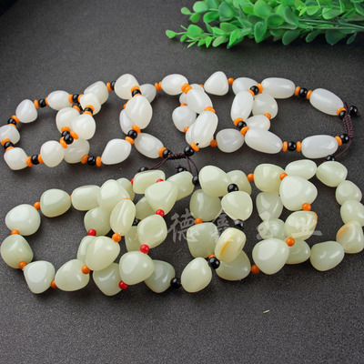 White Jade Necklace Afghan Jade Seed Shaped Chinese Men's Bracelet Hand Polished Turquoise White Jade Raw Stone Large Bead Necklace