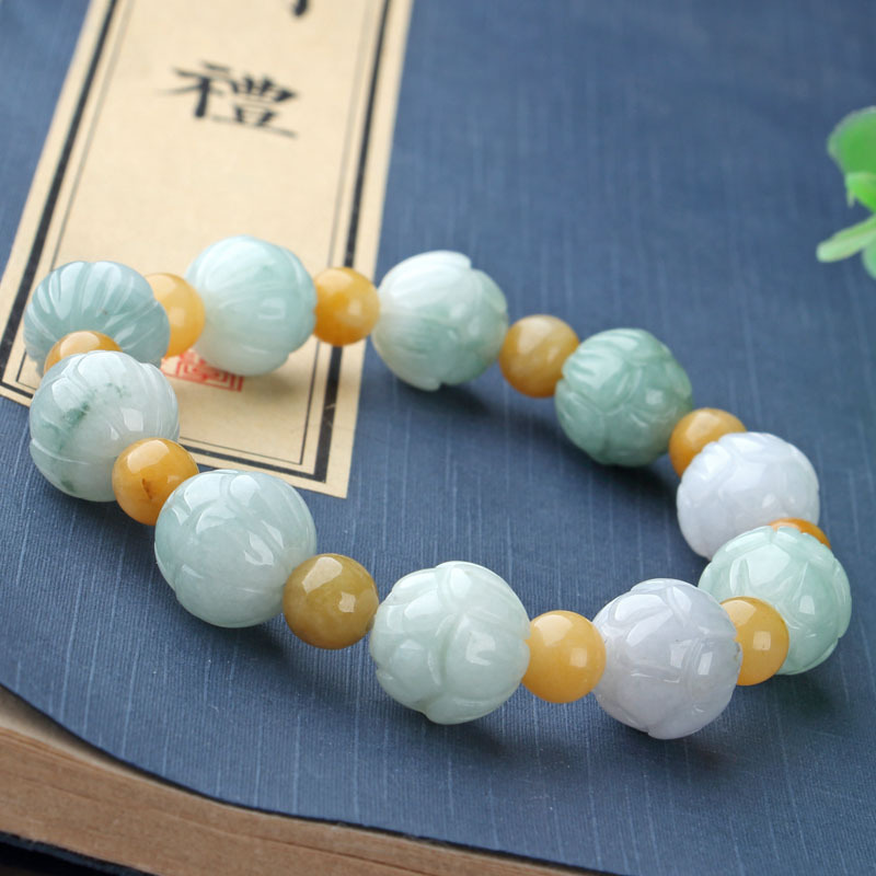 Jade Pi Xiu bracelet, Jade A-grade men's carved bracelet, Lu Lu Tong, women's lotus flower bracelet wholesale