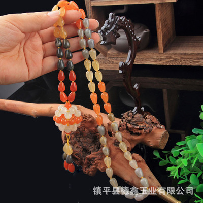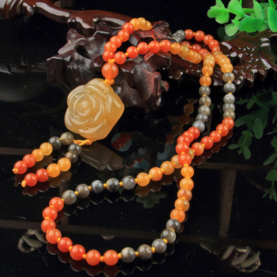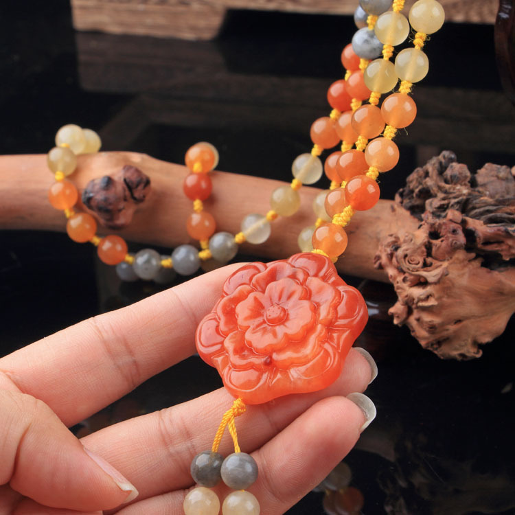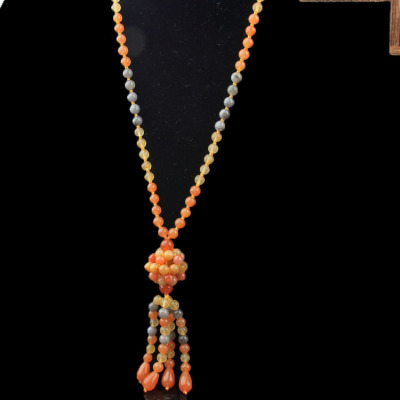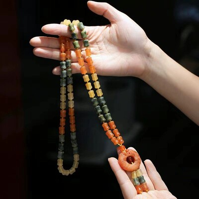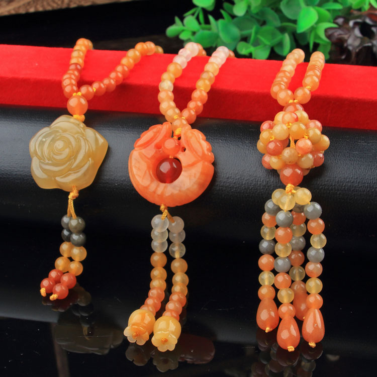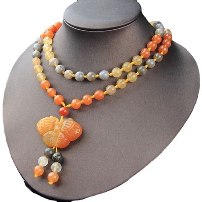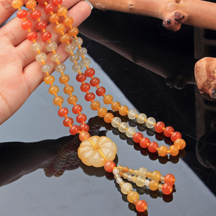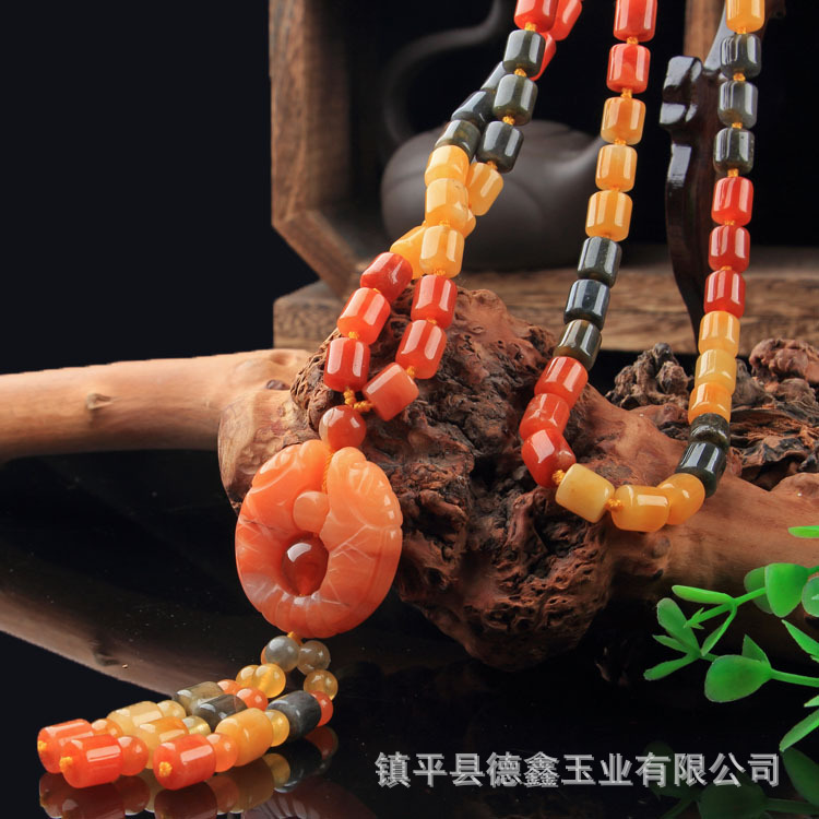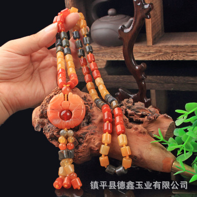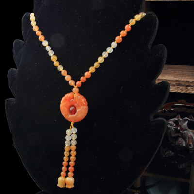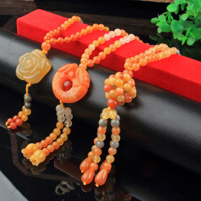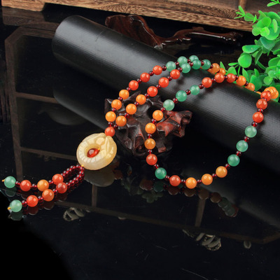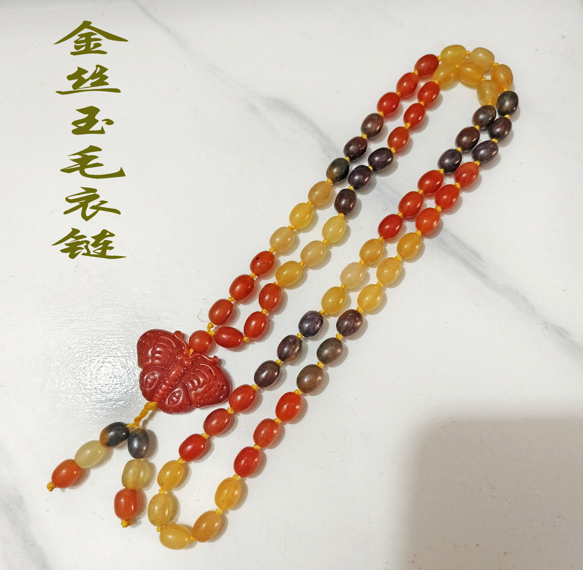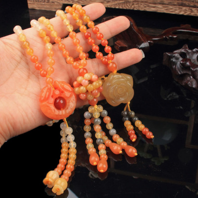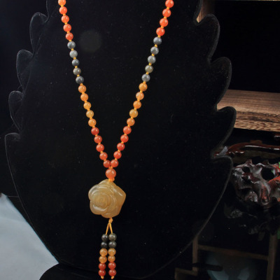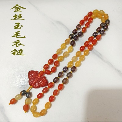 Xinjiang Karamay gold silk jade necklace, ethnic style sweater chain, hand-knitted women's clothing pendant, retro style