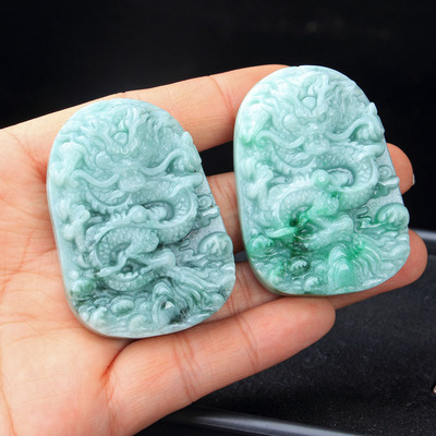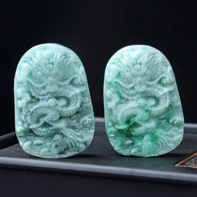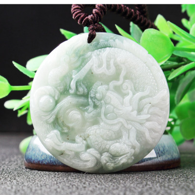 Large Men's Jade Dragon Pendant with Double-Sided Carved Clouds and Dragon Flying, Dragon Playing with Pearl, Nine Dragons A-Jade Supports Shipping