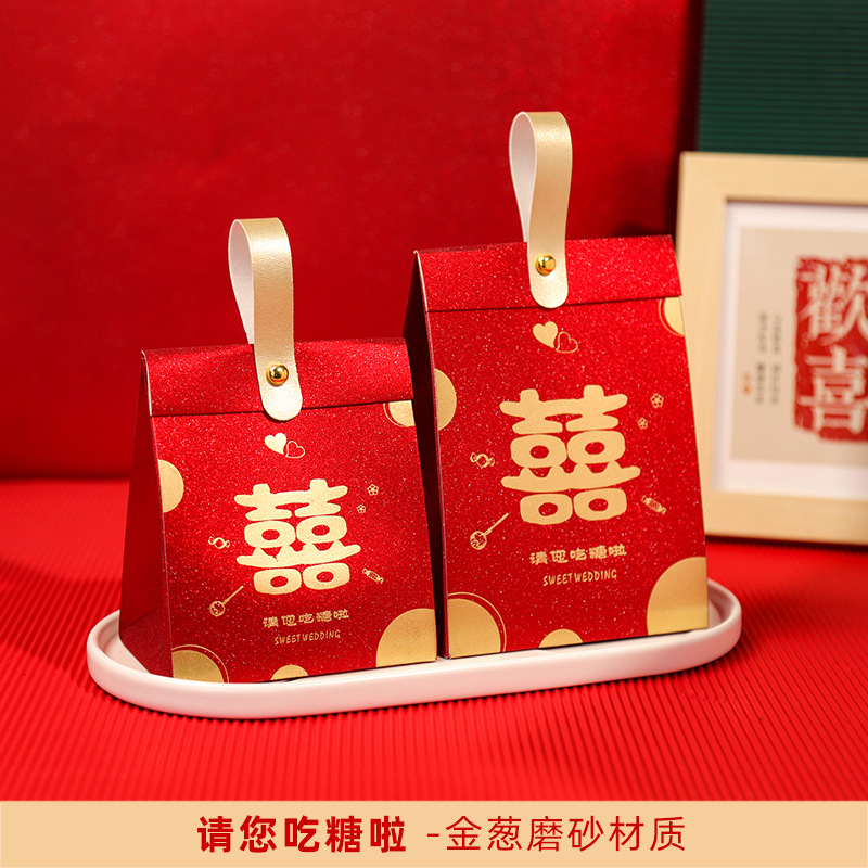 New Creative Hand-held Wedding Candy Box for Modern Chinese Wedding, Traditional Chinese Style Candy Pouch, Xiaohongshu Gold Foil Sanding Empty Box